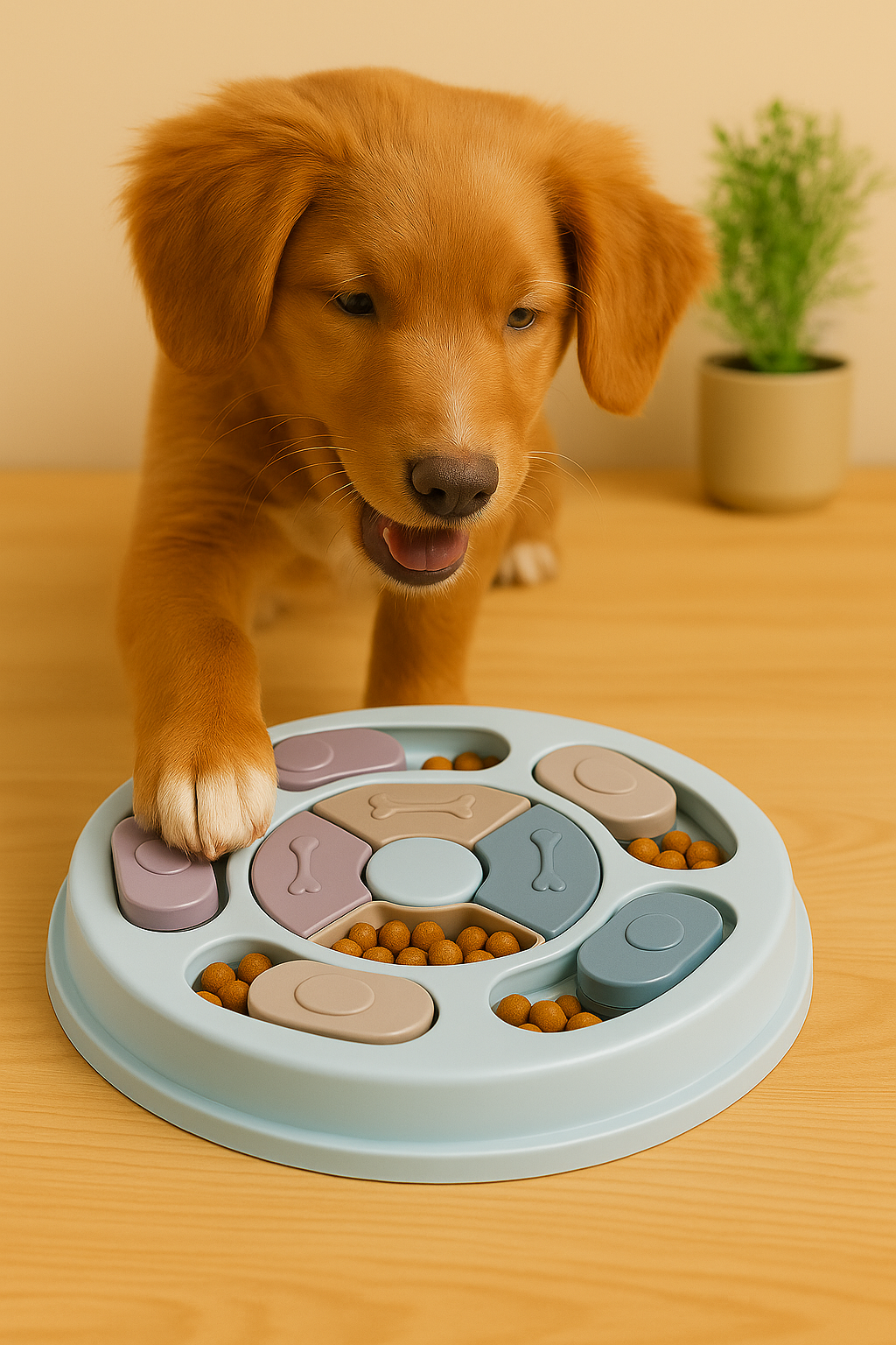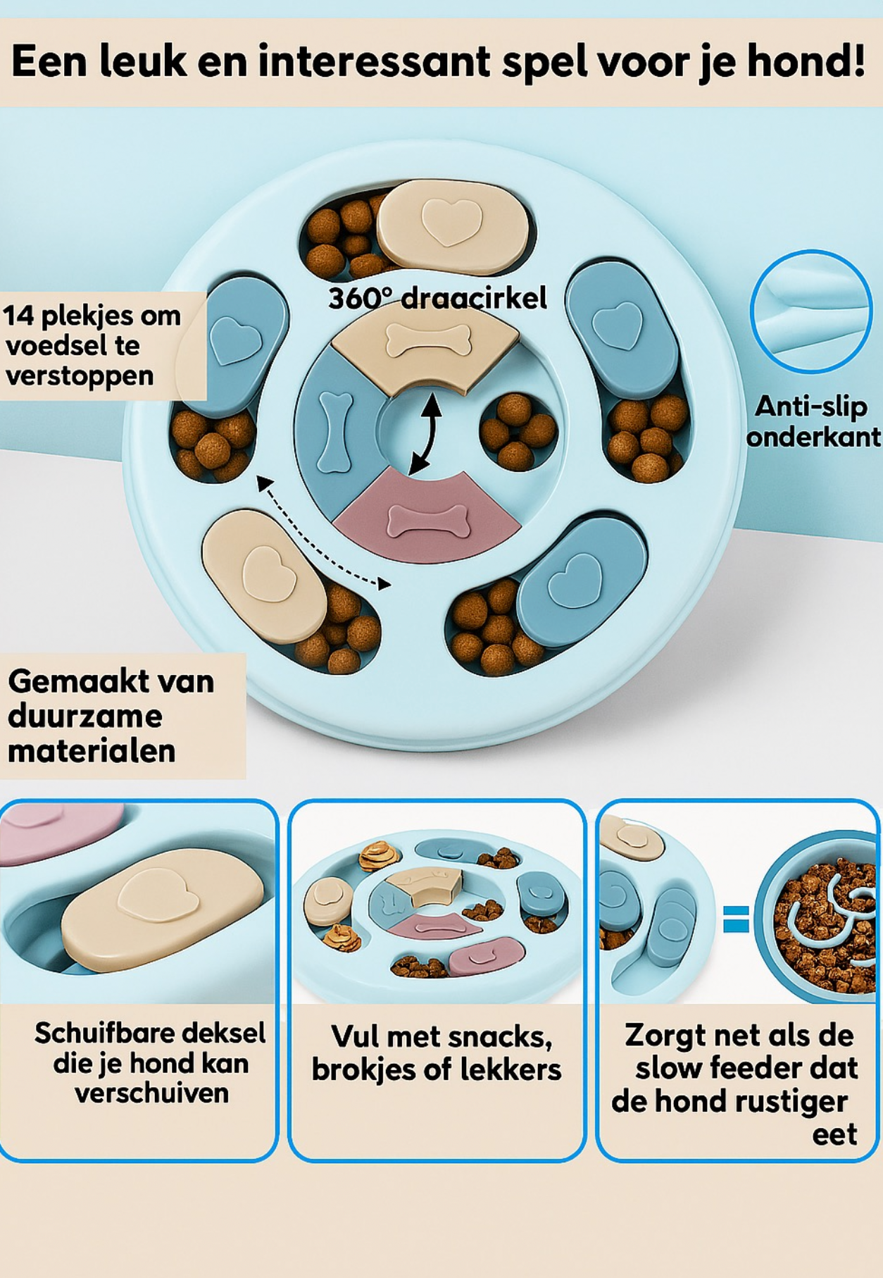 Deze slimme voerbak daagt je hond uit om spelenderwijs te eten. Het resultaat? Langzamer eten, blijere hond, Ʃn mentale stimulatie!